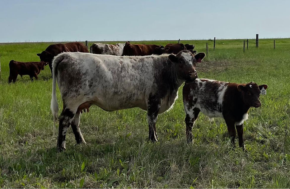Here is a female we purchased from Clythe Mane Shorthorns in the 2018 Shorthorn Alliance Sale. When we viewed the sale catalog, we were instantly drawn to her. She has grown into an exceptional brood cow - she is stout made with lots of maternal power. This is a female that always gets noticed on the ranch, and is often referred to as an "old style Shorthorn" - which is one of the main things we love about her! Flora is docile, feminine, and fancy to boot!