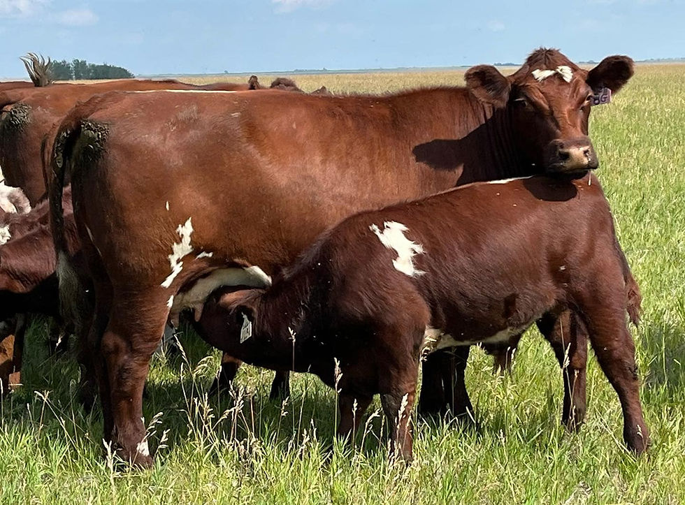 Another female we purchased from Horseshoe Creek Farms! When we first saw 11F, we were drawn to her & in awe of how long bodied she was! This is a female who puts absolutely everything she has into her calf and brings in a whopper each fall. She is clean fronted, smooth made, and carries herself beautifully on an excellent set of feet and legs. We feature many Free Spirit daughters and simply can't say enough good about them as mama cows - 11F is no exception. No muss, no fuss with this girl!